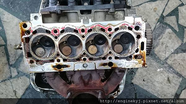 汽缸頭拆卸下來.左手邊第一缸明顯燃燒異常.週邊冷卻水道銹蝕.