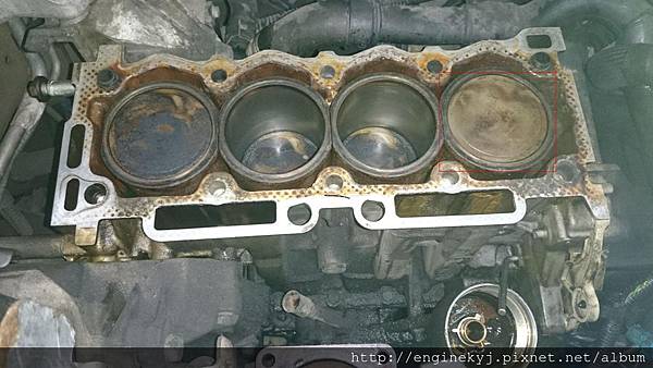 引擎本體.右手邊第一缸明顯被冷卻水沖刷的很乾淨.