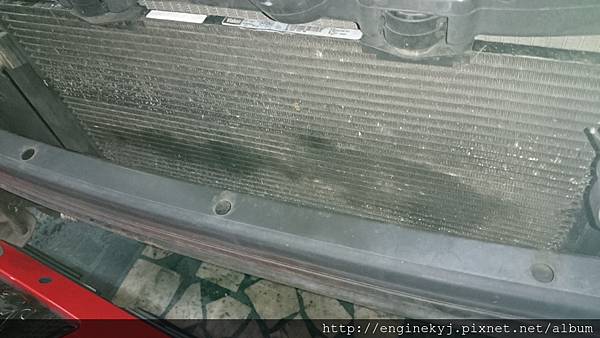 檢查冷媒滲漏.發現冷排在漏.剛好被前保內鐵檔住不容易發現.