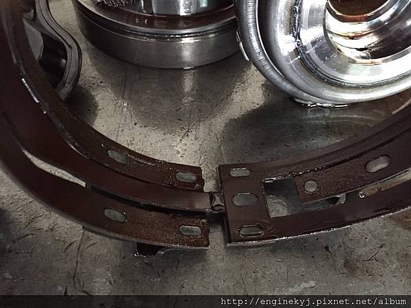 後煞車自動調機構的擊輪片缺件.上一手小徒弟更換煞車皮弄掉了.