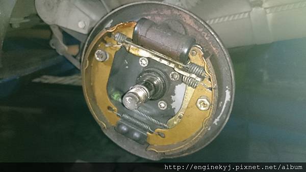 搞定AL4變速箱後.檢查煞車.發現.後輪煞車分邦漏煞車油.後輪煞車片還很厚.