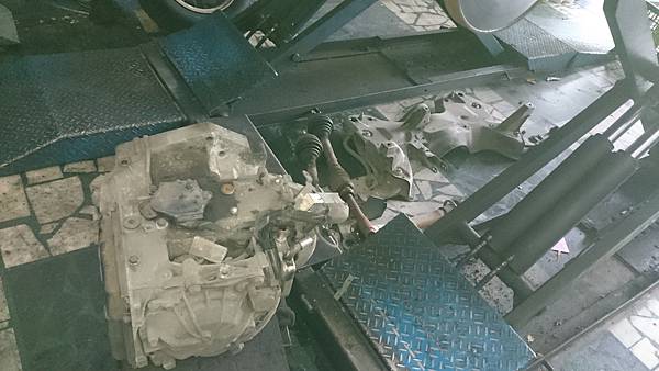 先對冷氣系統加壓測漏.再把AL4變速箱拆下來.