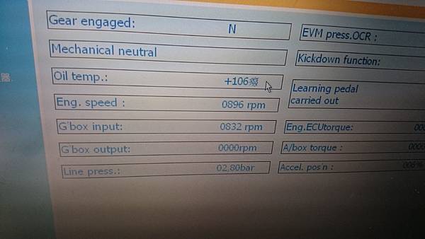 引擎水溫就飆到100多度.AL4變速箱油溫也飆到106度.換檔開始不順.
