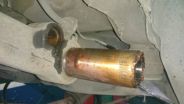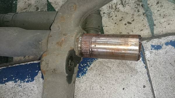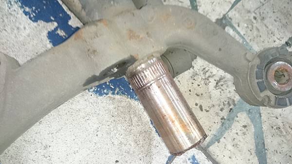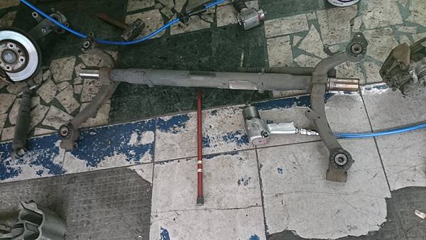 後懸吊臂拆卸後.後橫樑軸已經吃溝嚴重.