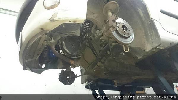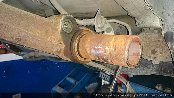 發現.整支懸吊臂會左右晃動.輪胎也磨到內規板.