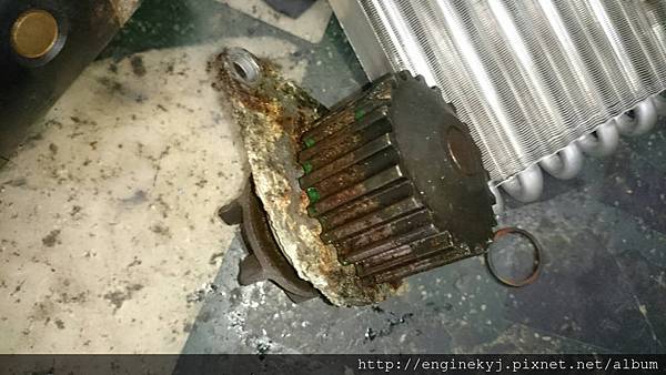 引擎冷卻水沒有保養.銹垢塞死熱交換器清不出來.