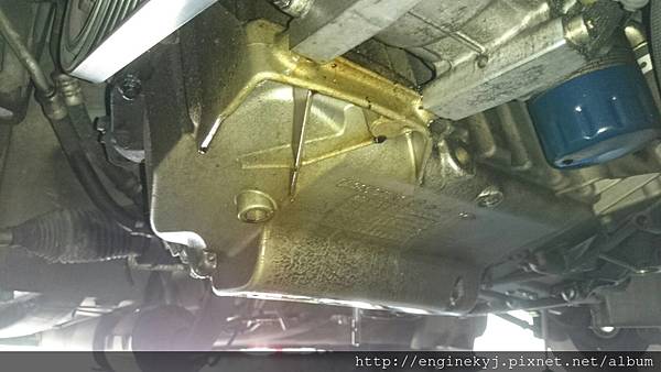 看一下實體情況.引擎油底殼都是漏出來的機油.