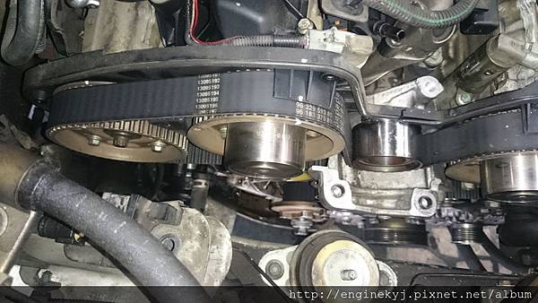 組裝新的正時皮帶惰輪組回車上.
