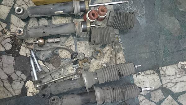 底盤更換掉前後4支老化的避震器.前後4支磨損的防滾連桿.平衡感橡皮.方向機拉桿及外球接頭.+定位.