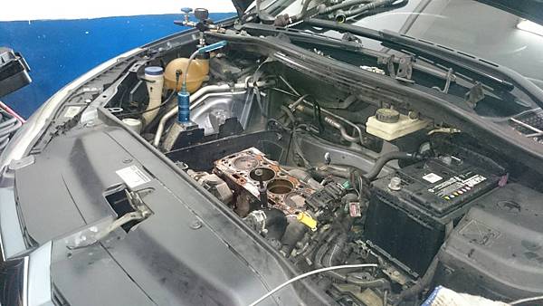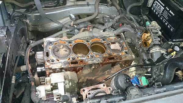 經過一番詳細檢查.判定汽缸床沖毀.造成冷卻系統有氣阻現象.