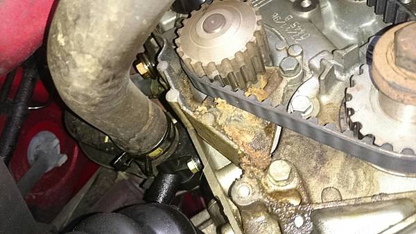 更換正時皮帶時 發現水幫浦也有漏水的痕跡.一起處理掉.