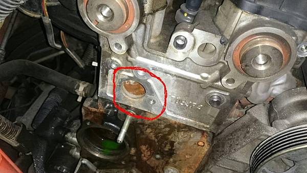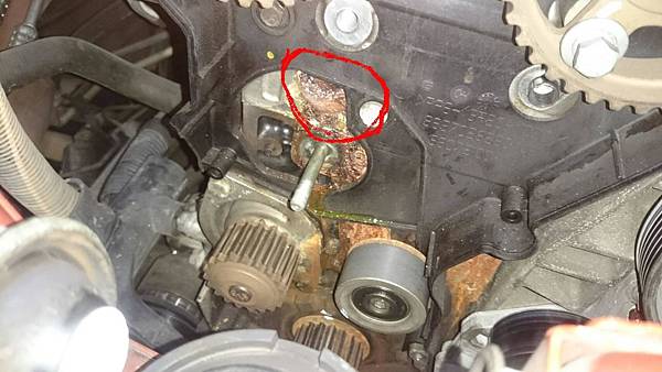 拆掉正時皮帶.惰輪 凸輪軸齒盤 朔膠背蓋 原來是水塞銹穿在漏冷卻水.
