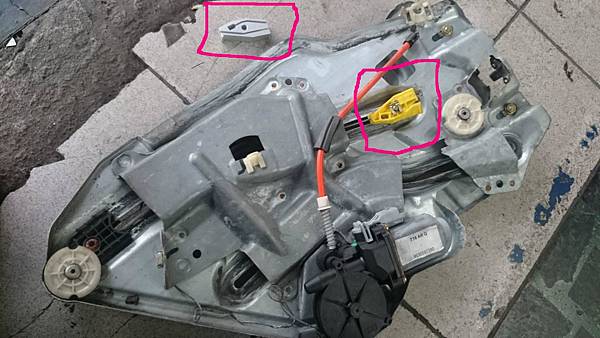 左後三角窗升降機滑塊破裂.鋼索炒米粉.