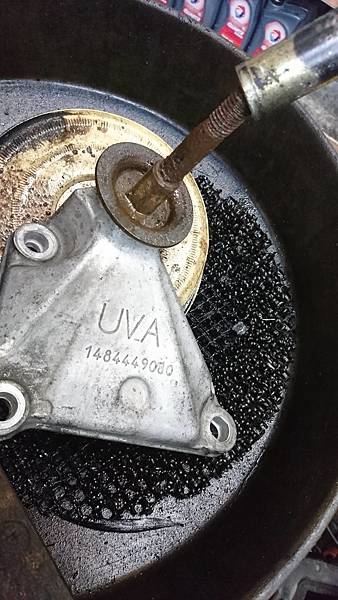 變速箱腳座有一點銹死.費了九牛二虎之力.再加上一整罐滲透潤滑劑才拆分離.