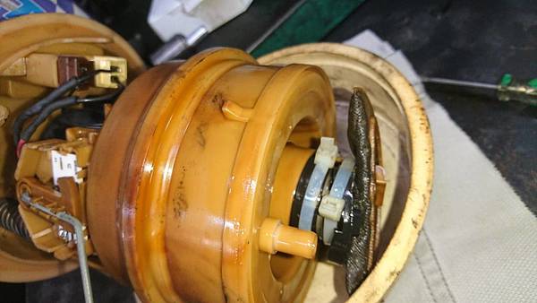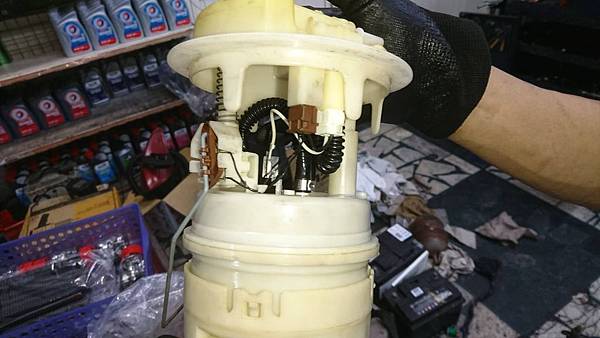 車上拆下來的汽油泵浦.哇咧.頭又大的油泵.