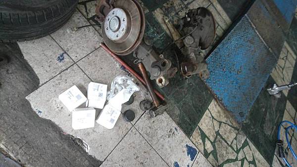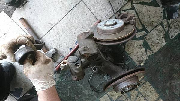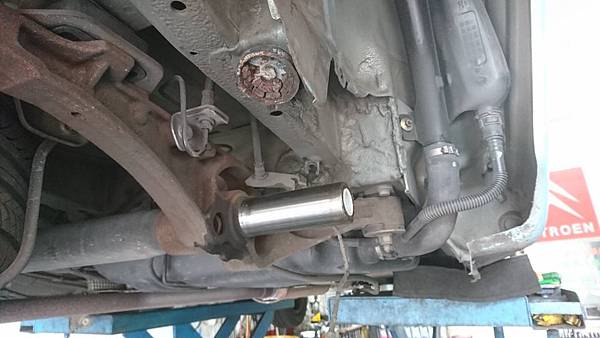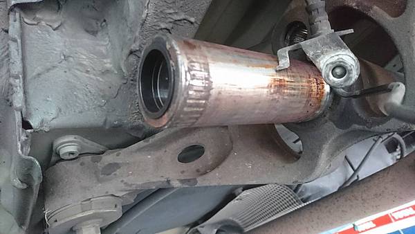 拆卸左後懸吊臂很有事.橫梁軸軸芯吃溝.