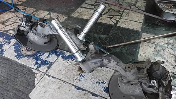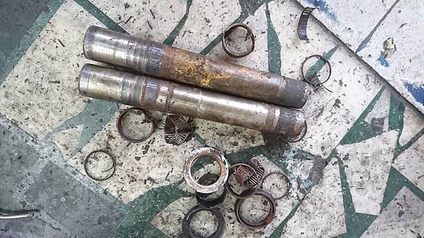 兩支懸吊臂的砲管芯.拿去油壓床逼換.