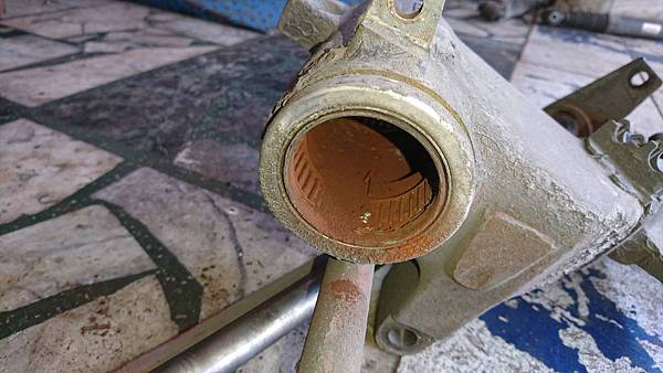 懸吊臂軸承進水銹蝕.