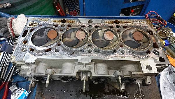 這顆引擎汽缸蓋有在外廠拆過.原因.正時皮帶斷掉.