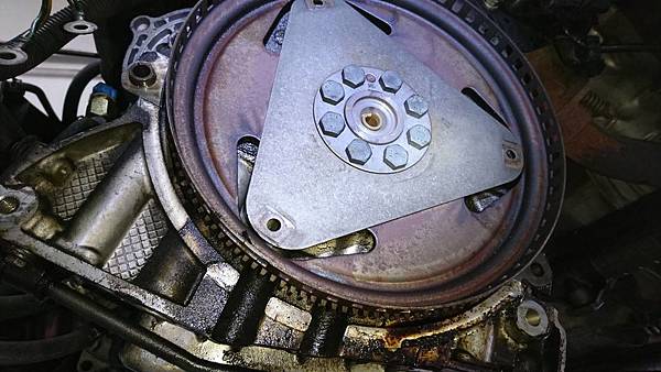 拆掉飛輪露出兇手.有人更換過曲軸後油封不久.沒有安裝好.