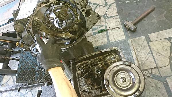 變速箱拆下扭力轉換器.清潔更換油封.