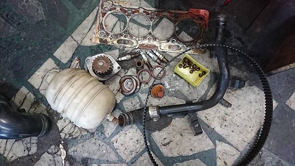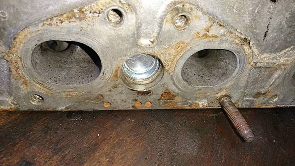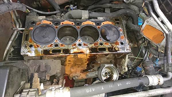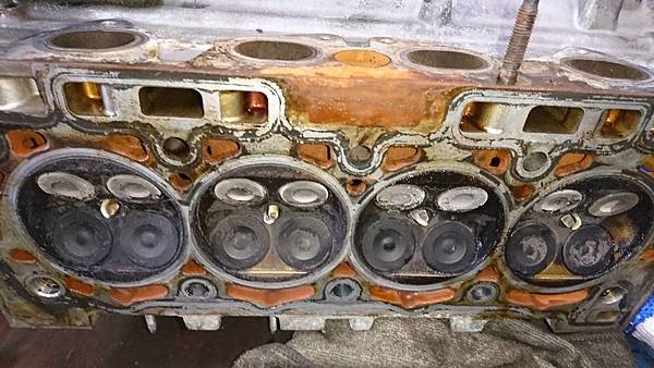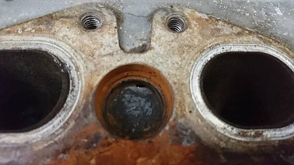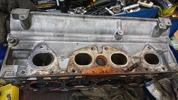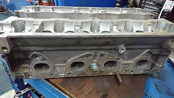 引擎汽缸頭拆卸下來.原來平時冷卻系統沒保養好.水塞銹穿漏水.造成引擎水溫過高汽缸床沖毀.