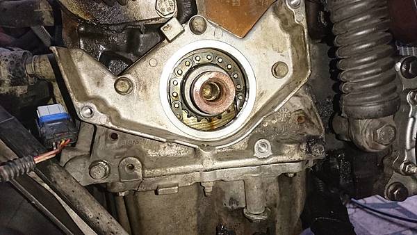 引擎漏機油是曲軸前油封損壞.更換.
