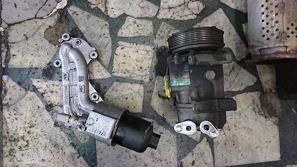 拆下來的壓縮機及清洗乾淨的機油芯座.