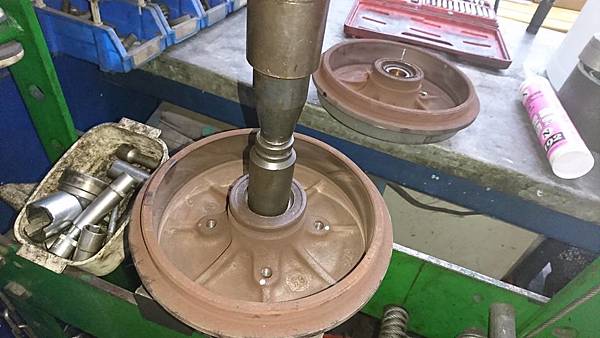 行駛後輪軸承嗡嗡響.油壓床逼換軸承.