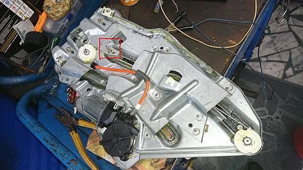整部右後升降機拆卸.分解修理.換上訂做金屬滑塊.測試完成.