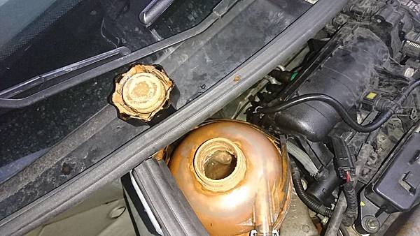 朔膠節溫器座很可疑.有人用AB膠黏過痕跡.