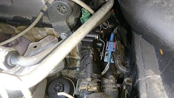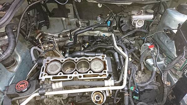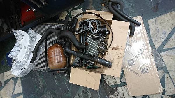 組裝完成.先壓力檢測試漏水.節溫器座已經換成金屬的.