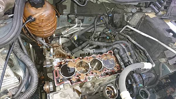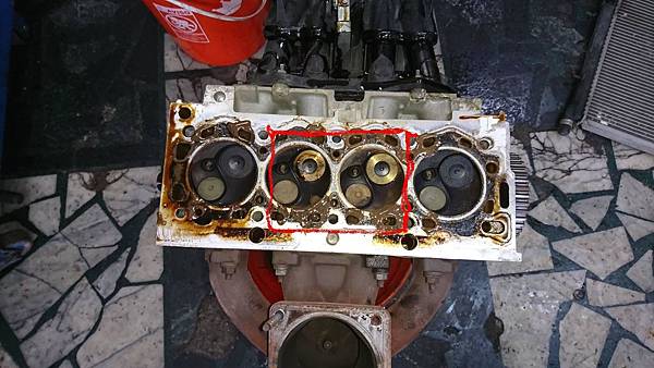 引擎汽缸頭拆下來.中間兩缸沒著火特乾淨.