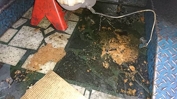 連接的水管更換了好幾條.泡在油泥裡.橡膠水管材質變胖發軟了.