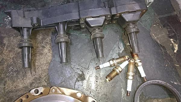 變速箱拆卸下來.飛輪拆下來.更換清潔曲軸後油封.