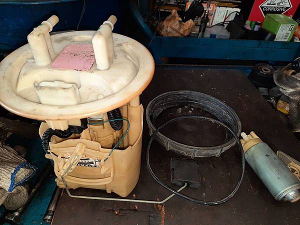 原來是汽油泵浦損壞不作用.拿出榔頭上上下下敲擊震動.