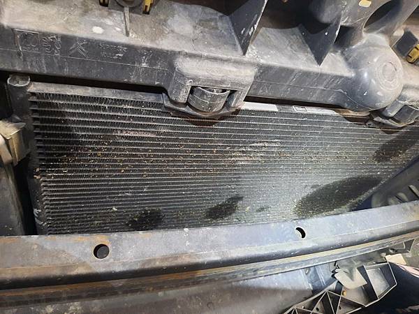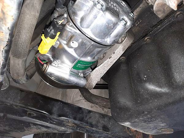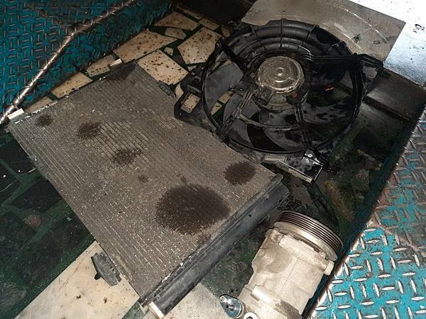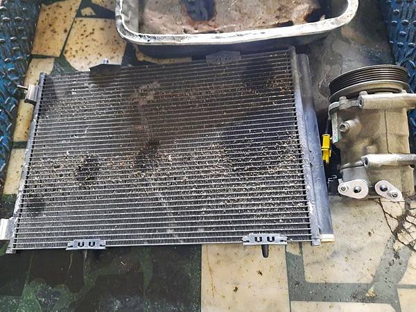 舊的壓縮機直接用電瓶電壓測試.不會動.內部燒了.更換新的冷氣壓縮機及冷排.