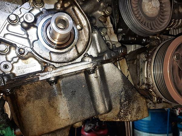 引擎漏機油部份.主要集中在傳動皮帶盤附近.