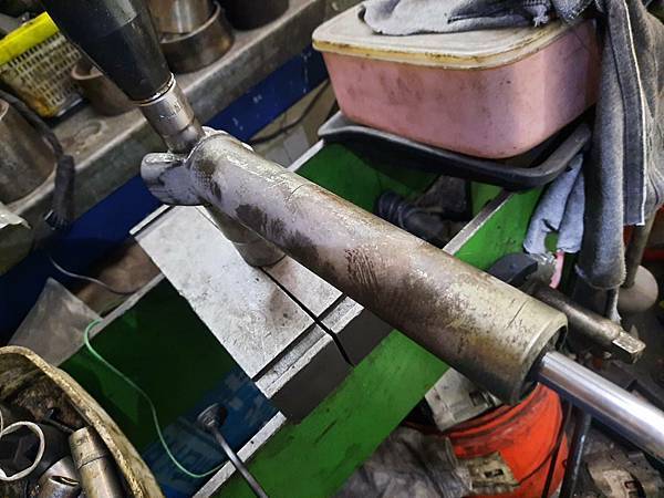 方向機的動力缸鐵套掛了.