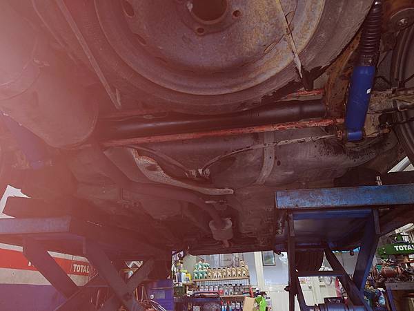 又叩又吼.還有排氣管破的聲音.車主說.已經在他廠更換兩支後避震器無效.