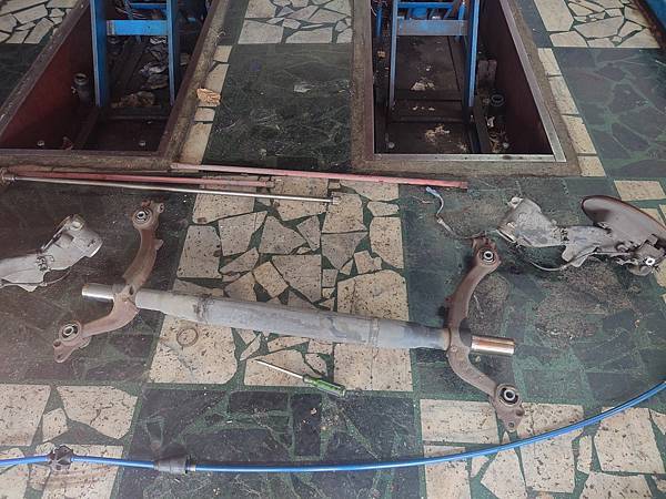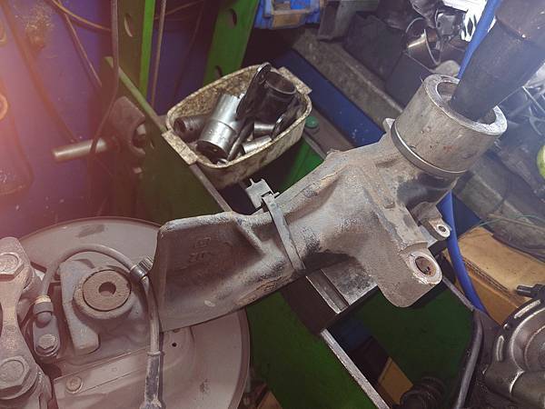 後懸吊臂拆卸下來.後橫樑軸右後吃溝明顯.