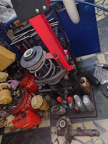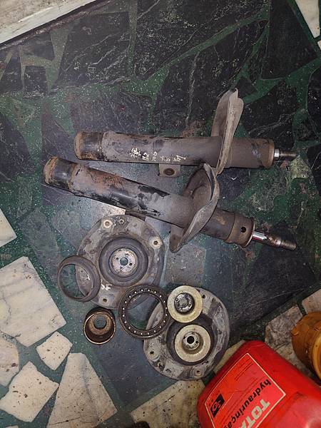 前避震器拆卸下來.發現前車主換過殺肉品.