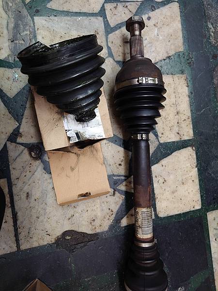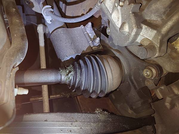 左傳動軸外防塵套破裂.潤滑油被甩出來.