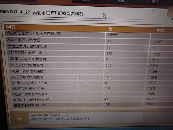 參數檢測.高壓油軌測得燃油壓力值.小於參考值.