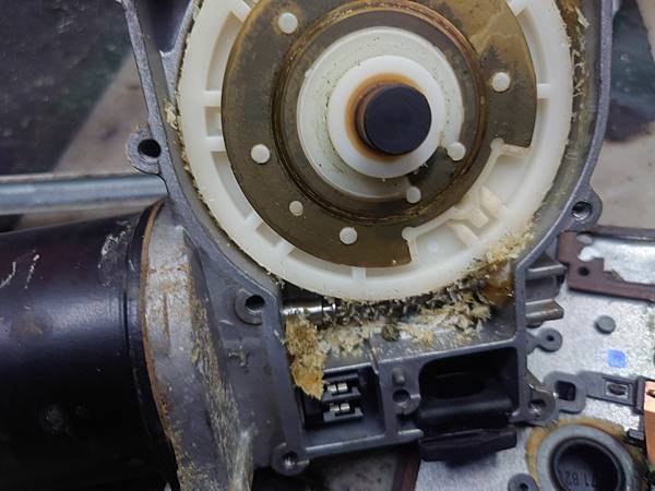 故障原因.塑膠轉盤崩牙了不會動.沒有分件可以更換.