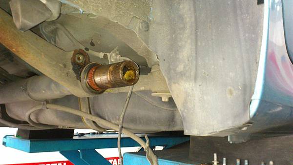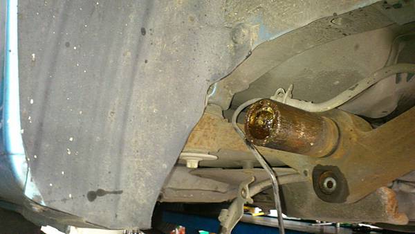 左後懸吊臂拆卸.後橫樑軸嚴重吃溝.