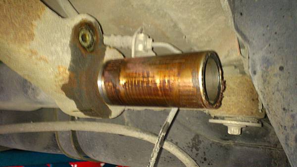 主要問題是後懸吊超過拆卸保養的里程.後橫樑軸磨損吃溝.