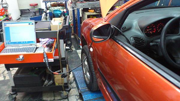 淡水來的206.此車是1999年206 1.4 已經跑了13萬公里.進場作定期保養.另交修引擎轉速表及時速表不作用.轉彎或載滿乘客.後懸吊傳來金屬敲擊聲問題.