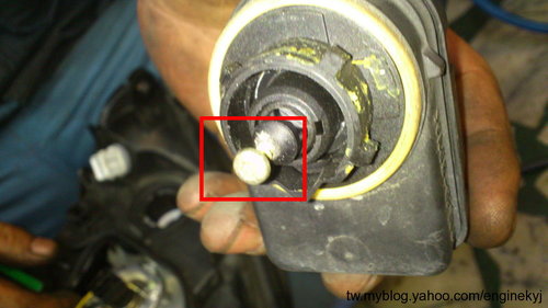 右邊大燈原來不能上下調整.手摸馬達有做動.拆下來檢查.原來馬達的推拉球接頭已經斷掉不見了.